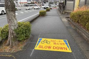 この場所は、朝晩に自転車の外国人が多く通る場所で、車との接触の危険があるため、英語表記の路面標示も新たに設置されました。今後も住民の皆さんの声を形にできるよう努めたいと思います。